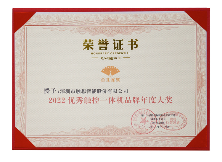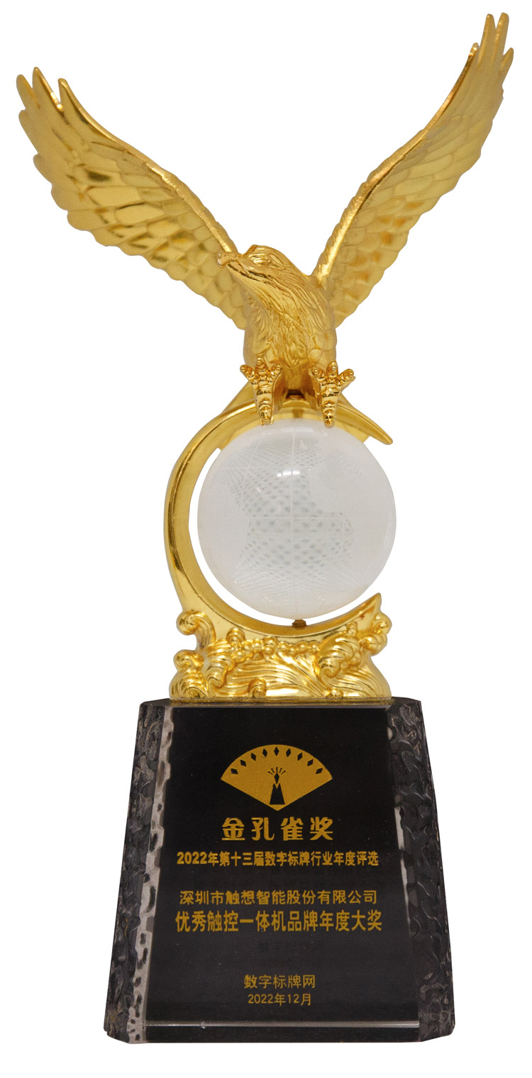 大會同期頒發(fā)了數(shù)字標(biāo)牌行業(yè)最高榮譽(yù)“金孔雀獎“,經(jīng)過近三個(gè)月、數(shù)百家優(yōu)秀企業(yè)的激烈角逐,觸想智能憑借在創(chuàng)新引領(lǐng),產(chǎn)品美譽(yù)、市場認(rèn)同方面的卓越表現(xiàn),實(shí)力斬獲金孔雀獎——2022優(yōu)秀觸控一體機(jī)品牌年度大獎。